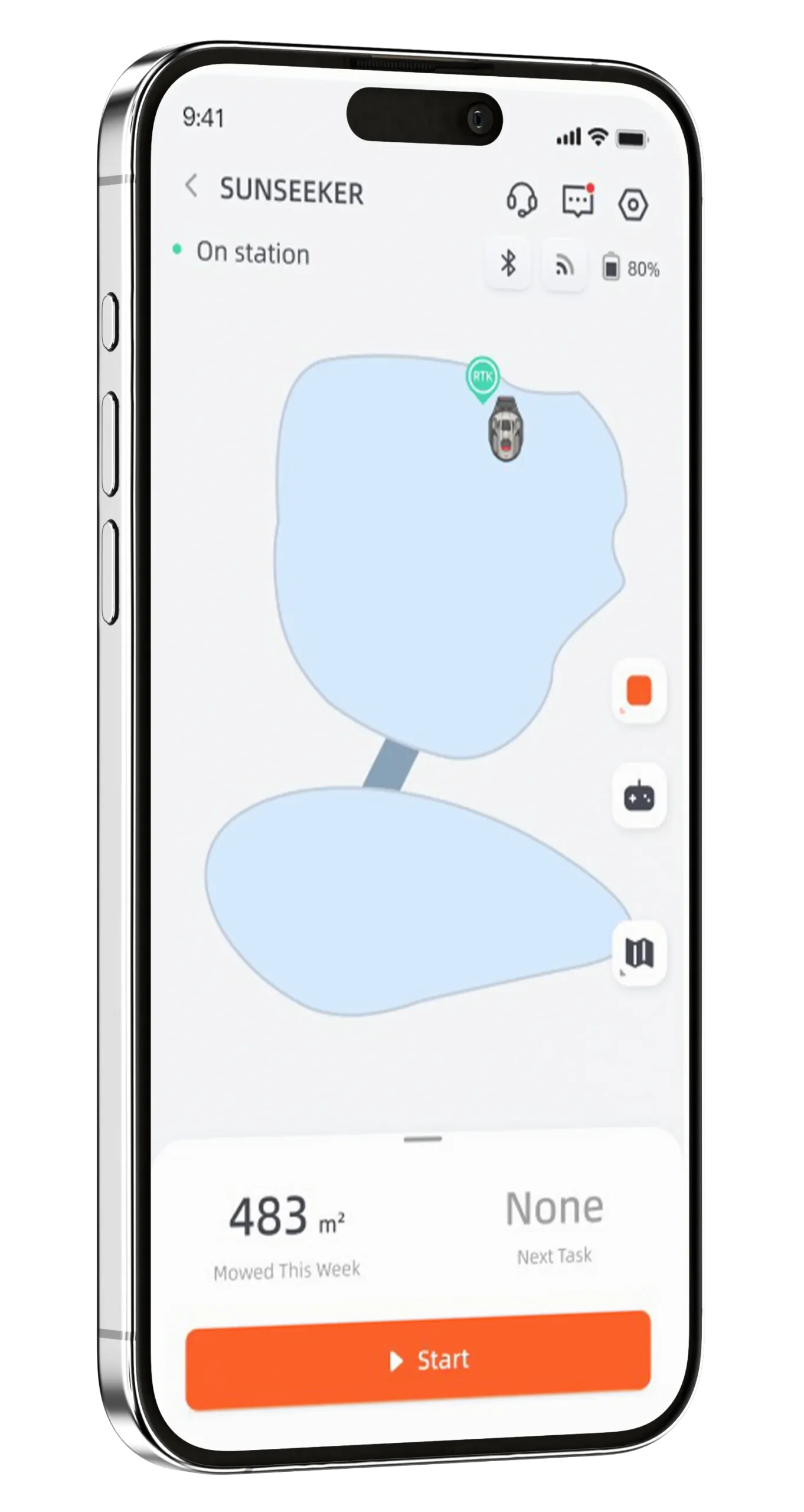 בלחיצה אחת מפעילים כיסוח או שולחים את המכסחת לטעינה. שליטה פשוטה, מכל מקום, בלי להתעסק עם שלטים.